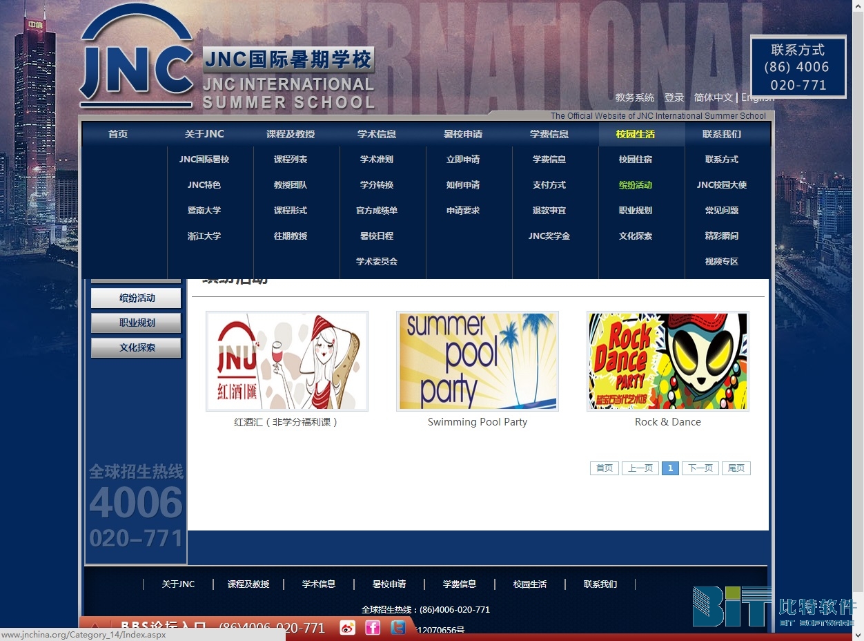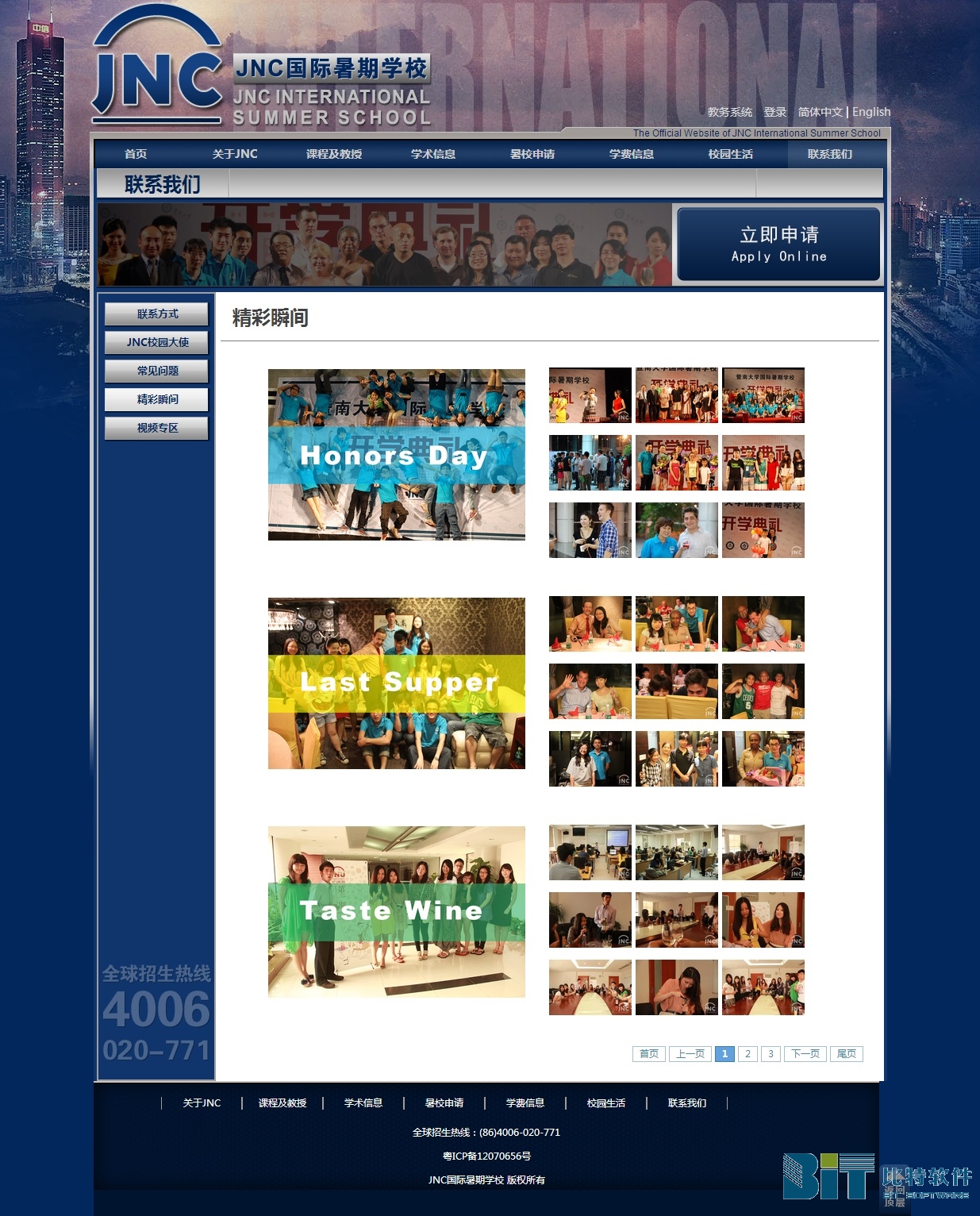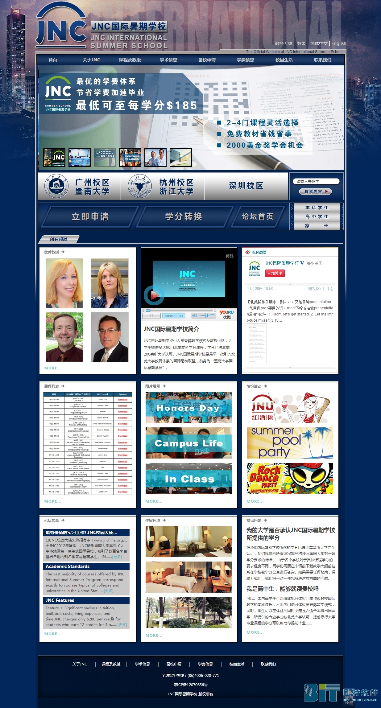 本网站具有宣传、展示、学生在线注册、选课、在线支付学费、教务系统、论坛等功能,为双语(中、英文)网站。